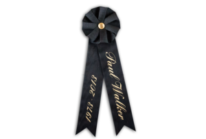 Ein Flot bietet viele Gestaltungsmöglichkeiten. Spielen Sie mit den Farben von Rosette, Knopf, Bänder & Text.