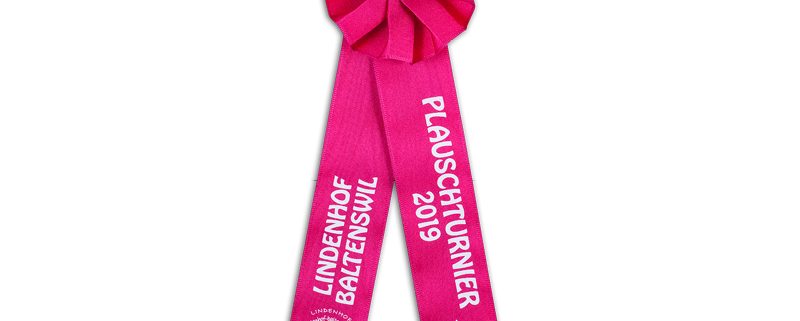 Ein Flot bietet viele Gestaltungsmöglichkeiten. Spielen Sie mit den Farben von Rosette, Knopf, Bänder & Text.