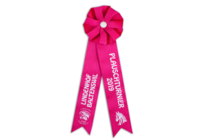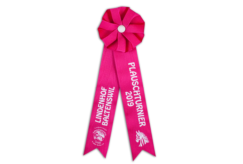 Ein Flot bietet viele Gestaltungsmöglichkeiten. Spielen Sie mit den Farben von Rosette, Knopf, Bänder & Text.