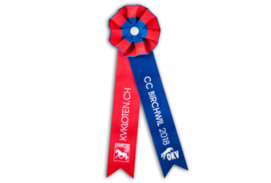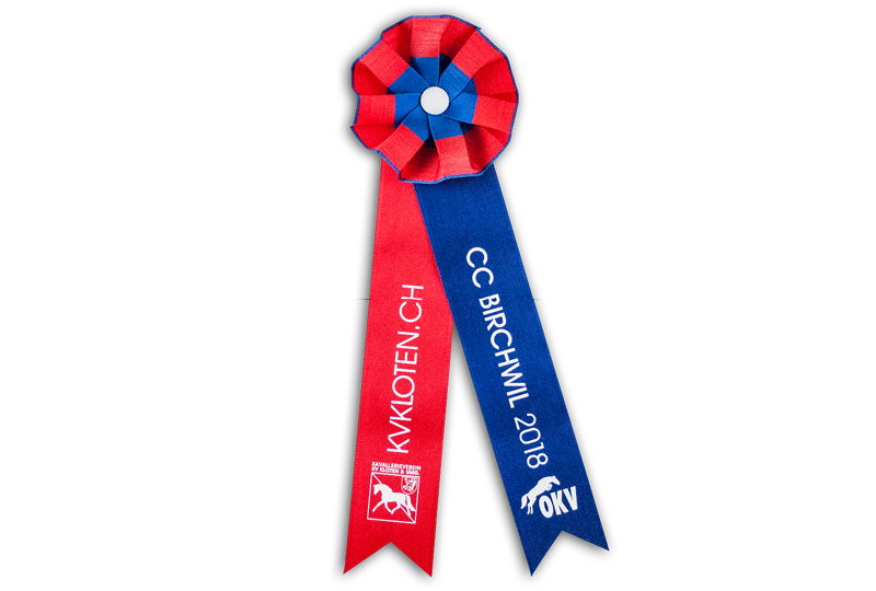 Ein Flot bietet viele Gestaltungsmöglichkeiten. Spielen Sie mit den Farben von Rosette, Knopf, Bänder & Text.