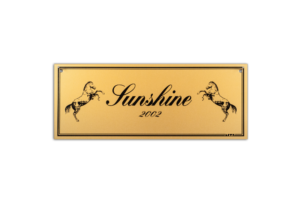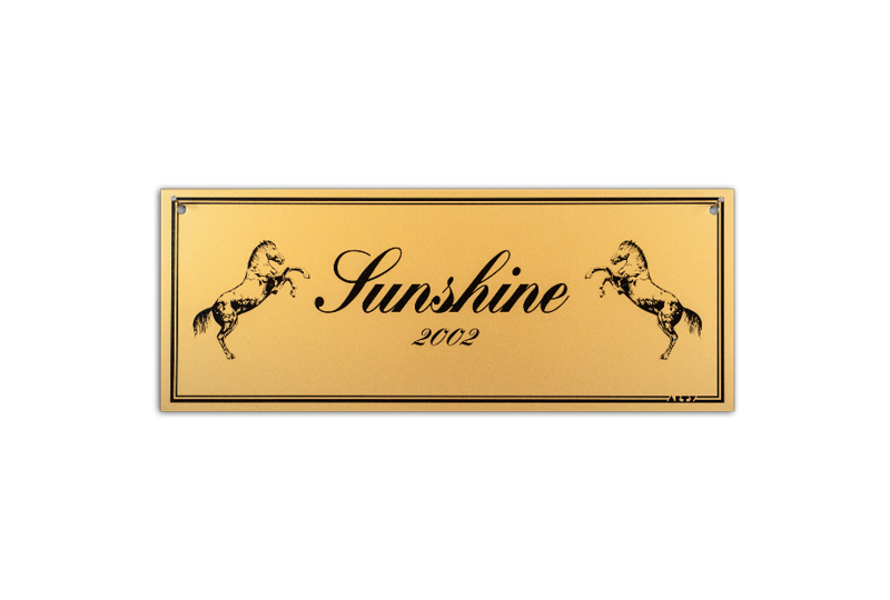 Goldeloxierte Metalltafel. Bitte geben Sie uns Ihre Gestaltungswünsche und die Form (Typ) bekannt. Gemeinsam finden wir das passende Design. |