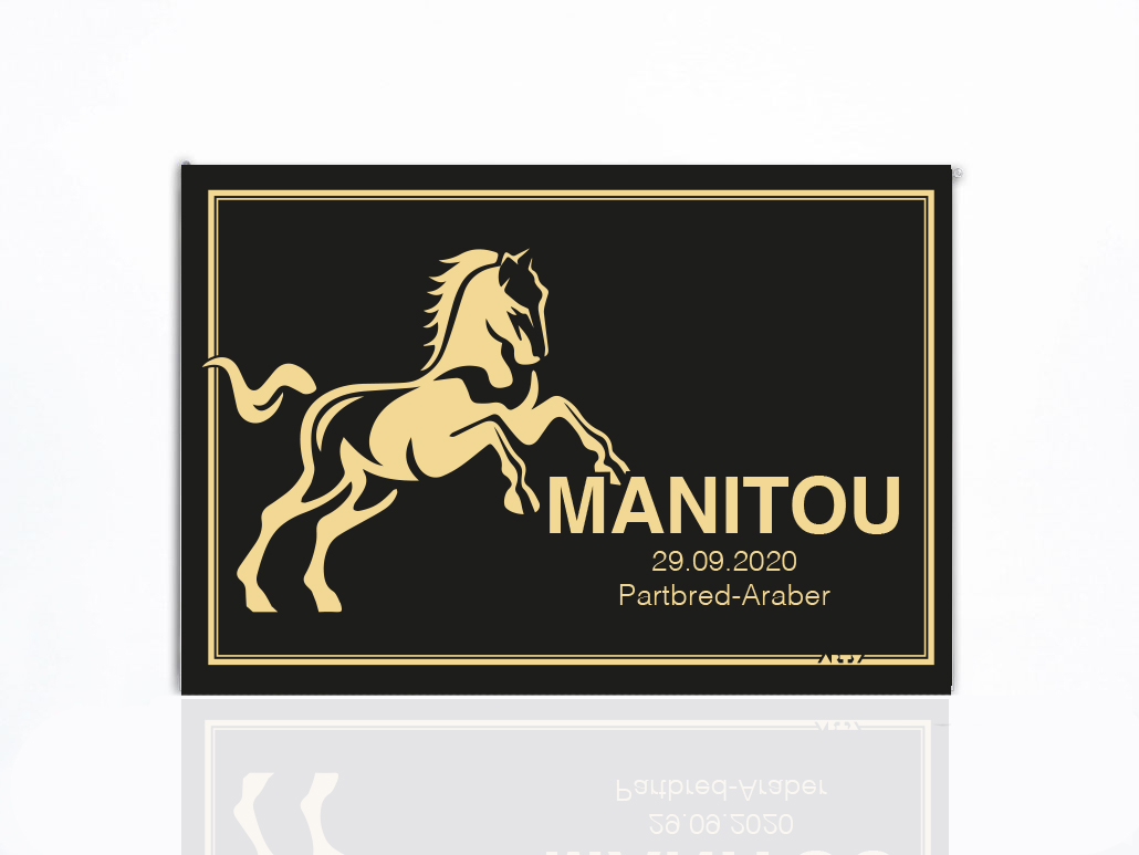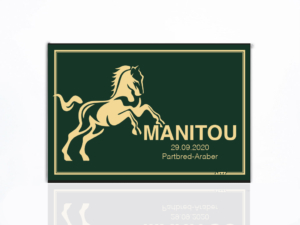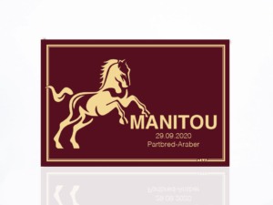Goldeloxierte Metalltafel. Bitte geben Sie uns Ihre Gestaltungswünsche und die Form (Typ) bekannt. Gemeinsam finden wir das passende Design. |