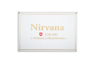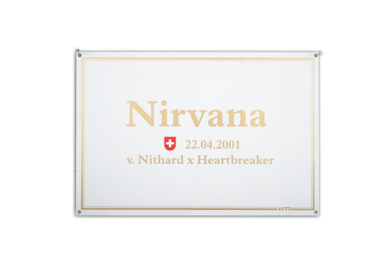Goldeloxierte Metalltafel. Bitte geben Sie uns Ihre Gestaltungswünsche und die Form (Typ) bekannt. Gemeinsam finden wir das passende Design. |
