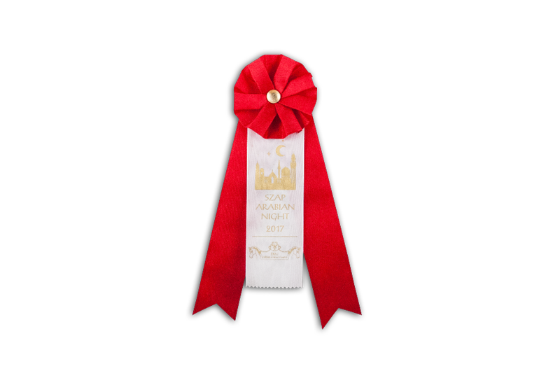 Ein Flot bietet viele Gestaltungsmöglichkeiten. Spielen Sie mit den Farben von Rosette, Knopf, Bänder & Text.